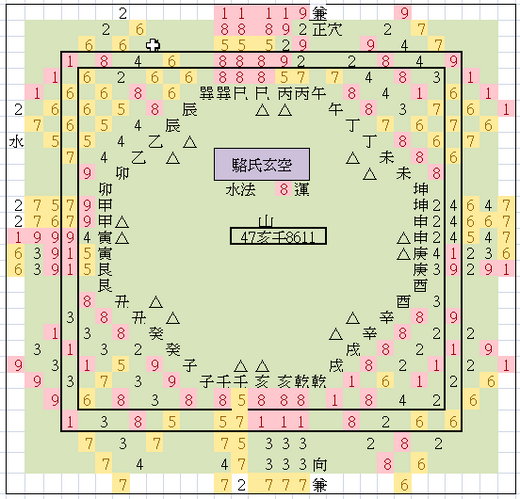,比章氏、沈氏、孔氏玄空更加細緻。其挨星訣不同,飛法亦不同。章氏者是以坐向飛入八方,駱氏則是以四十八山之挨星入中飛至山與向分山龍與水龍兩盤。
