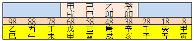合官留殺,身強七殺為用,癸財為喜神。居三男。五歲喪父,高中成績斐然,順利考上政治大學會計係,當兵之後當派報社老板,廣告公司老板,會計事務所老板,殺為用,癸水為喜神,妻美而助,育有二男,大運一路癸丑壬子辛亥北方水運,癸壬又透干,早運財運一路順遂。貧窮的子孩早當家。正是此八字的寫照。
