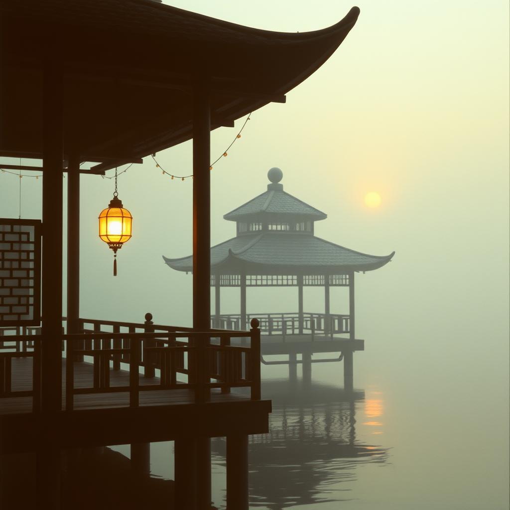 La brume voile les pavillons, la lune obscurcit la traversée du bac. La source des fleurs de pêcher est introuvable. Comment supporter lauberge solitaire, glacée par le printemps, avec le soleil couchant et le chant du coucou ?