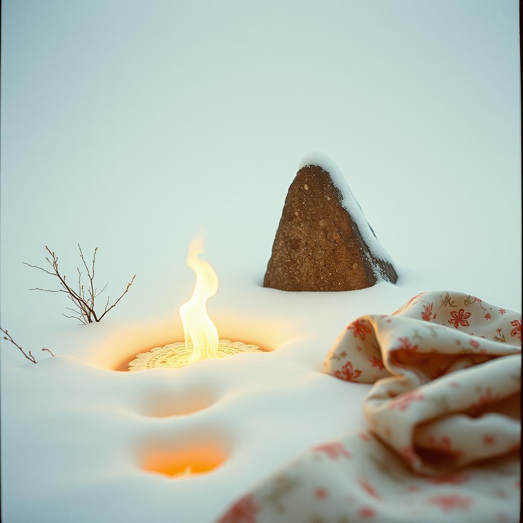 如同溫柔的火焰,它吸引著雪、雨和花裳。苦澀,被風慢慢吹乾,化為漫天飛雪中轉瞬即逝的靜謐。一塊基石。如同種子在歲月的侵蝕下萌芽,你展現出最美的姿態。