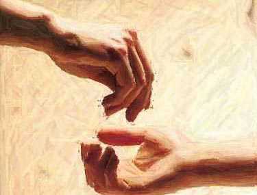 這幅圖教我想起米開朗基羅創世紀裡那兩雙手 亞當和上帝的手