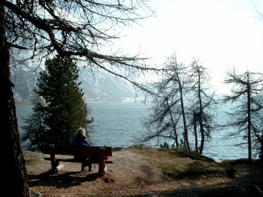 我們站在小旅館內,審視著你的書桌,這裡已是你的紀念館。門口有三條路,一條向左,一條向右,還有一條小山路就位於旅館的正後方。希凡潘納湖是向左,我們往左邊走去,經過幾家賣滑雪用具的店舖和餐館,一座小車站。天那麼藍,雲那麼白,阿爾卑斯山的輪廓帶著某種戲劇張力。路過的人們正在談論溫室效應如何衝擊著這裡的溶雪和山林。