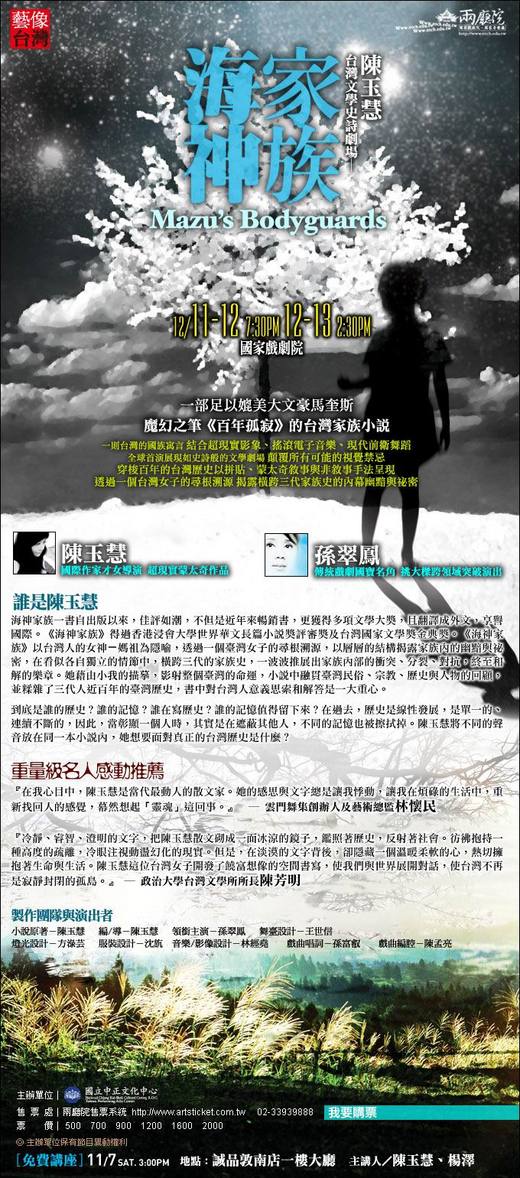歡迎指教,趕緊購票!還有,十一月七日有一場免費座談喔,由我和中時副總編及人間主編楊澤對談。