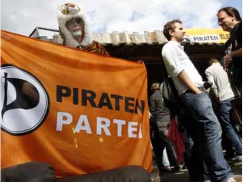 德國盜版黨(Piratenpartei)成立五年,至今全國有1萬3000名成員。盜版黨最初在瑞典創建,很快在歐洲引起網民共鳴,黨名是從音樂和電影下載平台「海盜灣」(Pirate Bay)而來,這個網站提供許多網民上傳的影音檔案連結,供人下載,被唱片公司和好萊塢視為盜版行為。