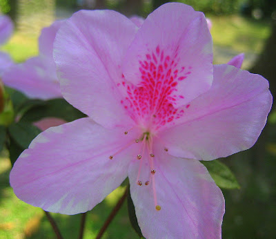 看到好友泡桐的回應﹐我也來湊一腳。他夫婦都是台大畢業的高才生﹐常聽到他說校園杜鵑花之美。偶呢﹐沒有福氣唸台大﹐預官分科教育時在復興崗受訓時﹐倒也看到一些美美的杜鵑花。泡桐說﹐復興崗的那些杜鵑花算什麼﹐那能跟我們台大校園的杜鵑花比?!如今偶住在異域番邦﹐到了三、四月﹐也是春城無處不飛杜鵑花柳。可是﹐偶不敢再跟他提到此處有杜鵑花的事情﹐怕一提﹐他又說:「那能跟我們台大校園的杜鵑花比……」偶就會自慚形穢柳。