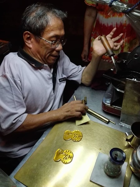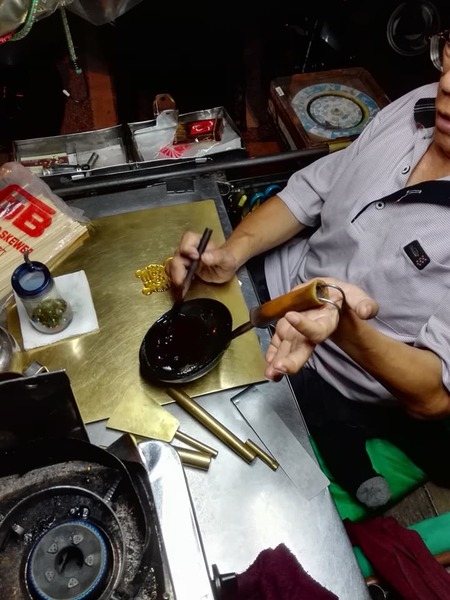 在把它倒入銅板上.就可以慢慢的畫.畫出您想要畫的圖騰。