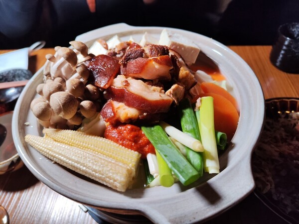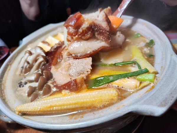 清新迷人。豚肉鍋特地倒了一杯本格泡盛增添酒香味,