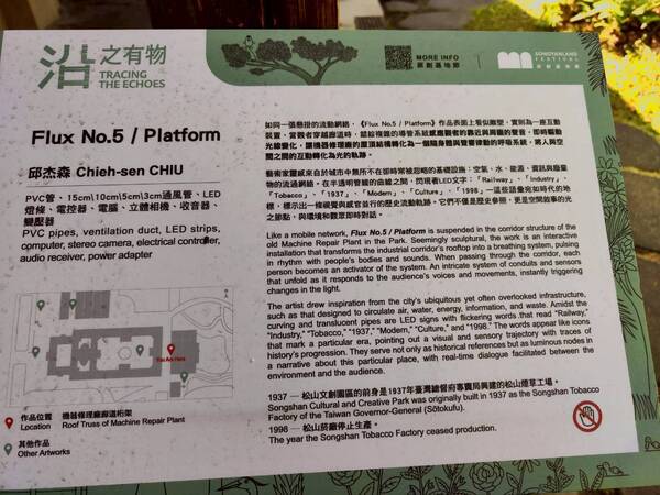 從1937年(民國26年)日據時期的「臺灣總督府專賣局松山菸草工廠」,光復後由公賣局接手更名的「臺灣菸酒公賣局松山菸廠」,再到2001年由臺北市政府指定為第99處市定古蹟後所定名的「松山文創園區」,這塊曾經是臺灣第一座現代化的捲菸工廠,替臺灣創造了相當高的經濟產值的地方,在2011年11月15日正式對外開放後,搖身一變,成為了臺灣原創發展基地。