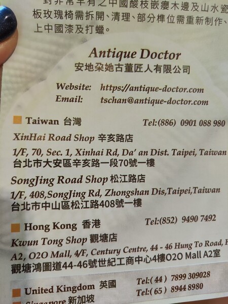 古董醫生是一家總部位於香港的專業古董修復公司。我們目前在以下地區設有店舖:香港、台北、台灣、薩裡郡、英國。