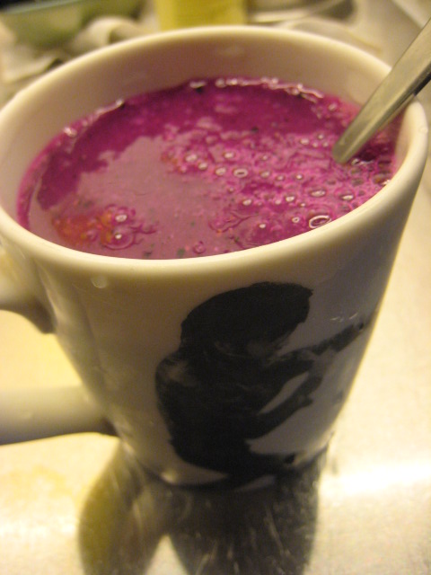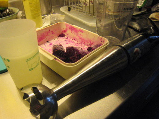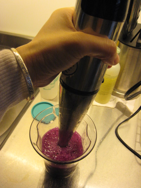 每回想喝現打果汁時,就自己擠檸檬汁(真真偷懶時,我就去﹃橘子工坊﹄買百香果綠茶或檸檬汁),二者適量以去年買的美國「Cuisinart電動攪拌器」略打個一分鐘,就成一杯現打新鮮的、酸酸甜甜的火龍果檸檬冰砂嘍。超好用、超方便。這個方法,我可以把老爸所給的大量火龍果消化至每年年底。