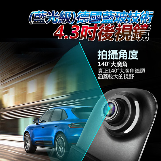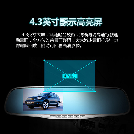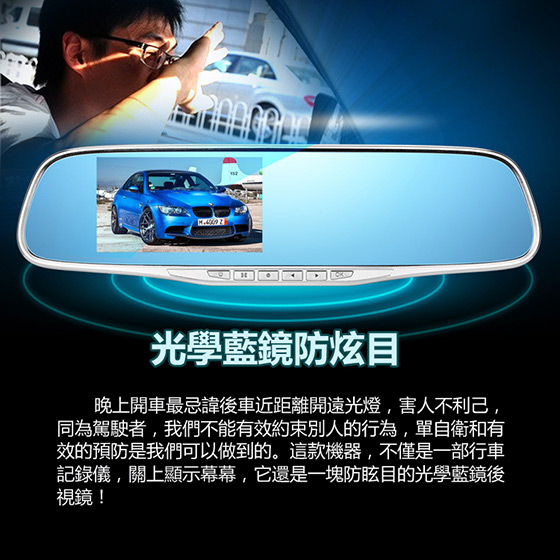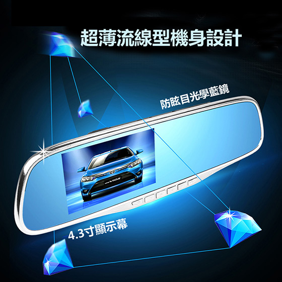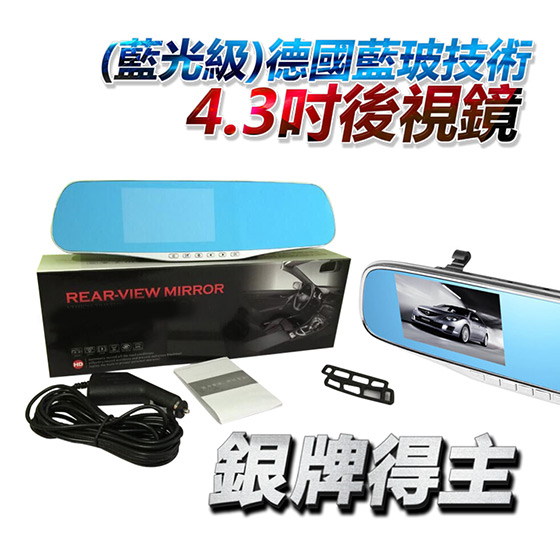 德國藍玻技術防炫光4.3 吋銀框後視鏡行車紀錄器