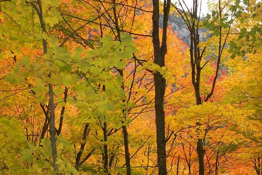 雖然在美國東北部住過九年,當時年紀尚輕,家中娘子成天忙於尿布與奶瓶之間,我則還在住院醫師的訓練中,而後又忙於找事。在這內有家累、外又事業無成之際,每年秋季雖然楓紅遍地,可是也無暇欣賞。近幾年來,我對攝影產生濃厚的興趣,作品中獨缺楓紅。因此幾年前的秋天在加拿大友人安排下,到亞加華峽谷賞楓。