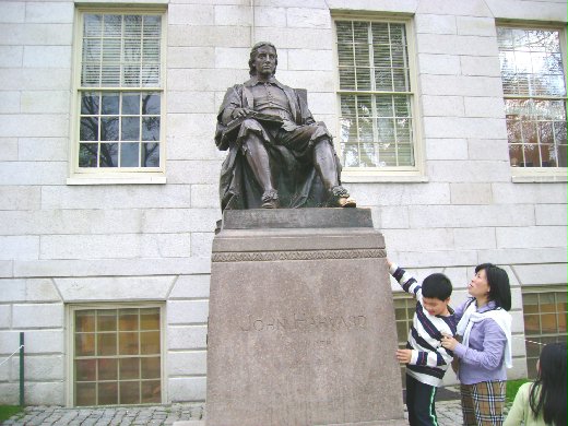 不過,看到哈佛創辦人那雙被人們摸亮的鞋子,回想15年前還是單身曾來過一遊,而如今算是舊地重遊,也算是 一種緣份。只不過這回是全家來重遊,而Kent 打趣教 Jerry 去摸摸金鞋,說不定得到蔽蔭,將來可來念 Harvard !