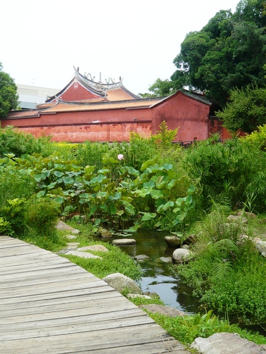 在車內驚鴻一撇的府城西區「忠義國小」~~緊鄰台南孔廟,校園建築配合文化園區的景觀,與孔廟的老樹、紅牆融為一體,一角的綠園生態水景降低了艷陽的熱力。進入校園第一眼就可以看到比教室還高大的老榕樹,像是阿凡達的生命之樹守護著校園莘莘學子,讓我久久無法忘懷這美麗的學校。