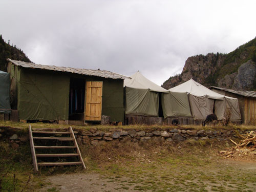 營地主人是成都赫赫有名的角頭老大,來到此地避事靜心,但是仍不改西裝領帶、梳油頭的老大風采,炒菜還是衣著光鮮地施展手藝,在藏地要吃到道地的四川菜實在不容易,而營地主人便是箇中好手,無怪乎許多拉車師傅都將客人載到此地,並不是客人要吃好味道,而是這些師傅在這等客人時可以吃到道地川菜,而且人手湊足時,牌桌一擺便摸個一天方休,當然,此時我們多半溜出去附近晃晃,否則會被此煞了神山聖境。