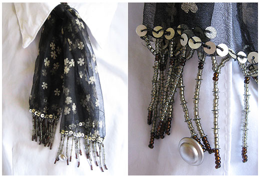 只好著手改造,在它的兩端縫上一點小重量,這樣就乖乖不會亂飛啦!不過要記得,不要心大,縫太多太重的裝飾,以免脖子累壞~~