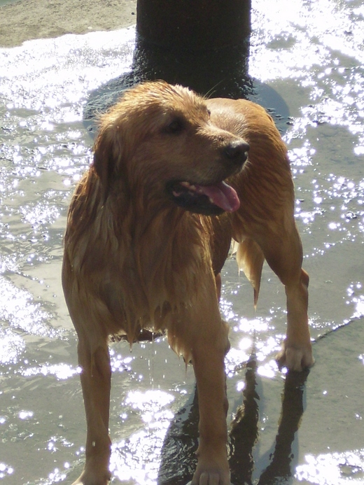 狗狗MANGO不僅身手矯健、泳技高超,而且家教極好,主人帶牠到碼頭運動,一天總會乖乖的泳個5、6回,撿回寶特瓶。牠從不接受遊客餵食,運動完了就回家,寶特瓶裡裝著沙,主人投得再遠,他都有辦法啣回來。