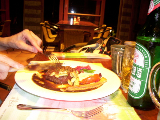 小貓和爸爸都點了菲力,5分,肉質細嫩出乎意料。小貓嘖嘖嘴很「暮光」的說,「真是鮮甜啊!」。