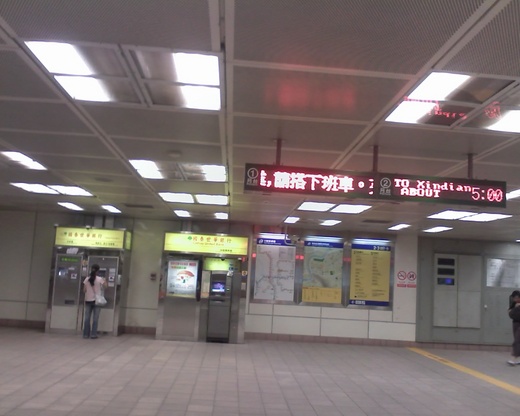出了火車站,小明在迷宮似的地下車站找了好久,才找到捷運入口,此時看到閘門口上方跑馬燈看板顯示:列車進站作業中,請搭下班車,嘆道:糟糕,沒趕上列車,得等到下班才有車搭……唉!現在才上午十點,到五點下班時間,看來有得等了。