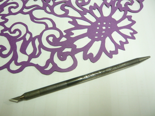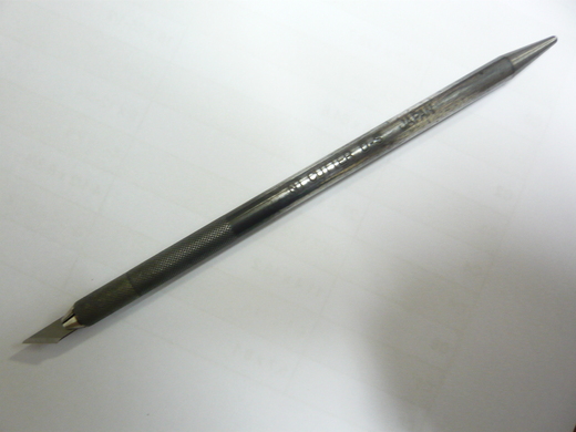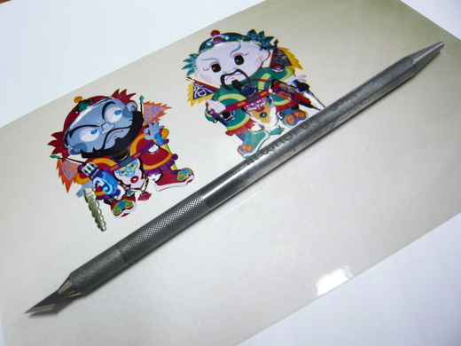 你製作紙雕是否有什麼特殊工具?還是特殊刀子?沒錯!這兒有一支傳說中的筆刀,它和我心靈企合、人刀合一,是一把隨我征戰二十多年的神奇筆刀!當初可是環亞百貨公司的專櫃精品。