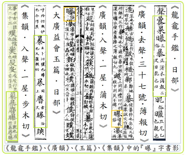 2.早期韻書裡的「曝」字