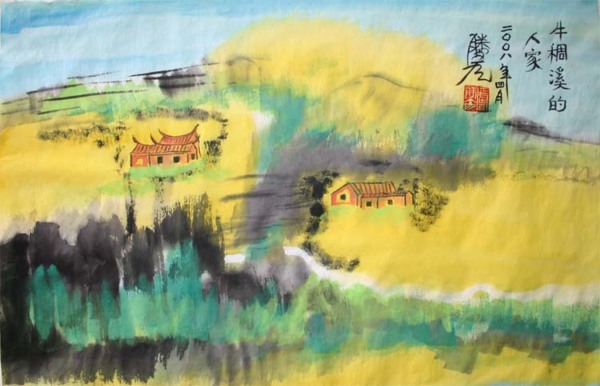 聖尊蓮生活佛~畫作——牛稠溪的人家