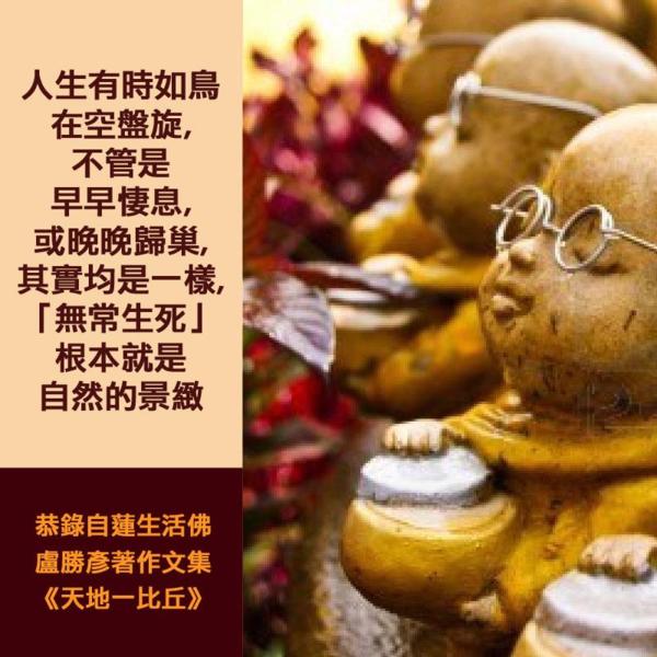 人生有時如鳥在空盤旋,不管是早早棲息,或晚晚歸巢,其實均是一樣,[無常生死]根本就是自然的景緻。
