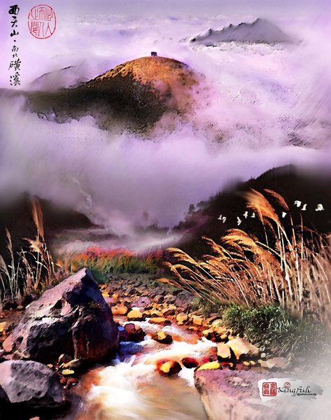 圖/傅金福老師 面天山、南北雙磺溪水墨寫真