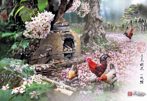 圖/傅金福老師水墨寫真.又見桐花一炊煙