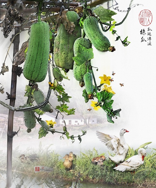 宋代的杜北山〈詠絲瓜〉云:「寂寥籬戶入泉聲,不見山容亦自清。數日雨晴秋草長,絲瓜沿上瓦牆生。」全詩描寫的山野景色,讀來頓感神清氣爽。