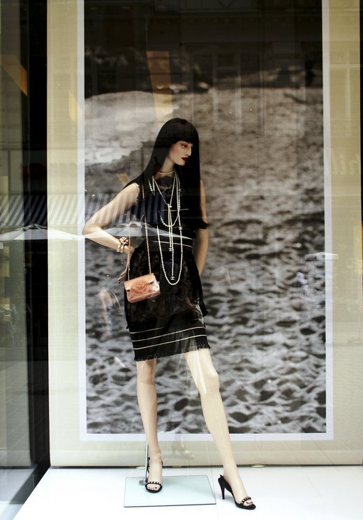 路邊屬於義大利性感的古池(Gucci)模特兒,將新款提包捧在臉龐,魅惑地對行人施展魅力;法國氣息的香奈兒(Chanel)櫥窗則展示了兩件式高雅套裝和黑白雙色的高跟鞋。我在櫥窗與櫥窗之間取景,拍模特兒、拍街景倒影、也拍自己;一面思考是不是要三個月都不吃飯來換一件掛著雙C牌子美麗衣裳這樣的大哉問。