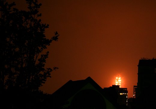很奇妙的,甜滋滋的布丁一口又一口地讓心情好了起來,甚至願意冒著寒風走上屋頂拍根本就遠得亂七八糟的煙火。鏡頭後的煙火以一種燃燒的態勢照亮天際,先是一小角,然後半個天空,接著彷如失火般染紅烏黑夜色。