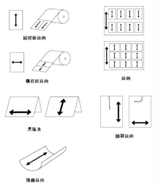 (2)紙邊比較法:是一種比較不精確的方法,一般較平齊的一邊是絲流方向,較粗糙的一邊是垂直絲流方向。
