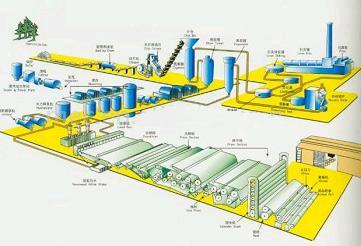 製漿段:原料選擇→蒸煮分離纖維→洗滌→漂白→洗滌篩選→濃縮或抄成漿片→儲存備用。