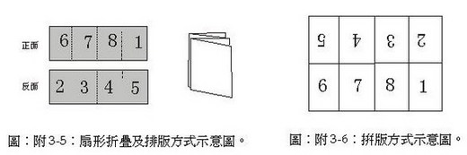 零散件在印刷品中佔有較重的份量,例如,一張需要正反印刷幅面為16K的印品,可拼成如圖附3-2所示正反印刷的雙面版,為了節省印版也可拼成如圖附3-3所示,在印刷時不需調換叼口邊的單面自翻身版。