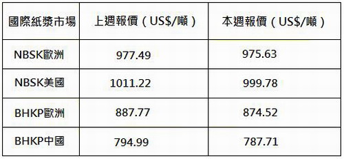 中國BHKP:紙品產量持續縮減,紙漿的進口因此減少。最近進口紙漿的價格刺激了本地非木漿的生產。印刷紙和書寫紙市場依舊不景氣。雖然紙巾紙和包裝紙的需求依舊良好,印刷紙和書寫紙產能過剩導致這些紙品價格下降,中國紙漿購買商們發現他們無力購買現在價位的紙漿。由於交易雙方進入膠著狀態,交易量依舊很低。