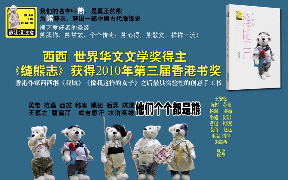 西西是誰?王安憶說,她是香港的說夢人。余華說,任何圍繞西西作品展開的討論和評說都有可能陷入危險的境地。陳子善說,她是尚未被介紹的境外最後一位文學大家。艾曉明說,在世的中國作家,西西最有資格獲諾貝爾文學獎。近日,江蘇文藝出版社推出了她的「頑童體」代表作《縫熊志》,作為新書首發活動之一,後天,數十隻身穿古代各朝服飾的毛熊將走進深圳物質生活書吧,開啟一場毛熊「文化之旅」。