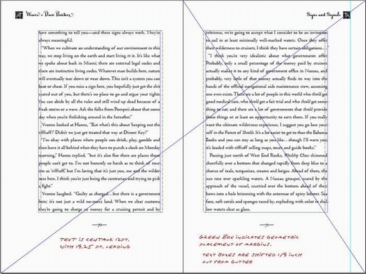 2.在單頁和雙頁的交叉對角線上任意選其一點,畫平行線和垂直線,任意可以改變版心大小。