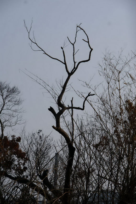 僅見落葉枯木彷如凝眸之仕女,眺望遠方,思索伊人歸期.