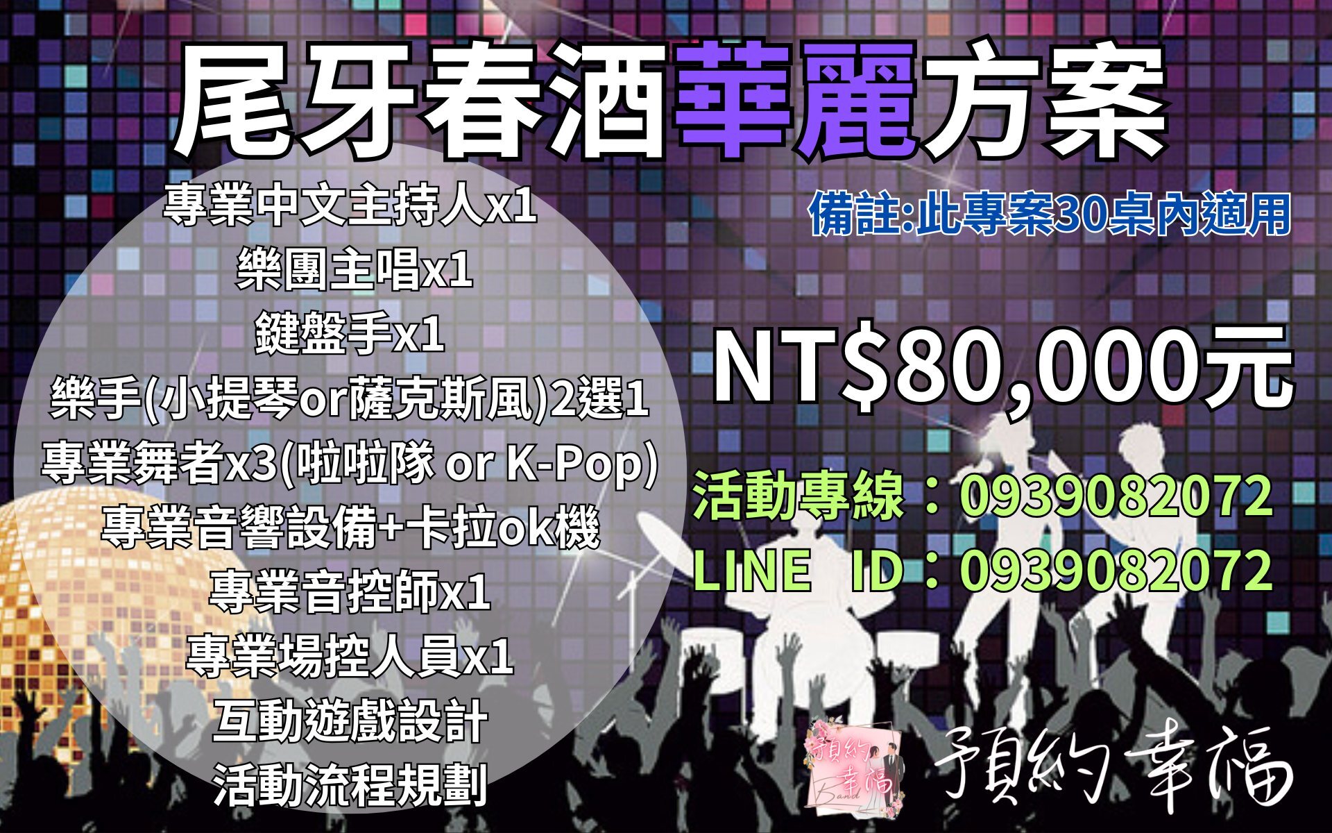 2025尾牙暨2026春酒,費用,樂團表演價格,經濟方案(20桌內適用) 樂團三人組 歌手兼主持人 鍵盤手 樂手(小提琴or薩克斯風)2選1 全套專業音響設備+卡拉ok機 專業場控人員 流程規劃設計 ...