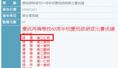 100學年度臺北市中小學班級網頁競賽榮獲高中職組特優