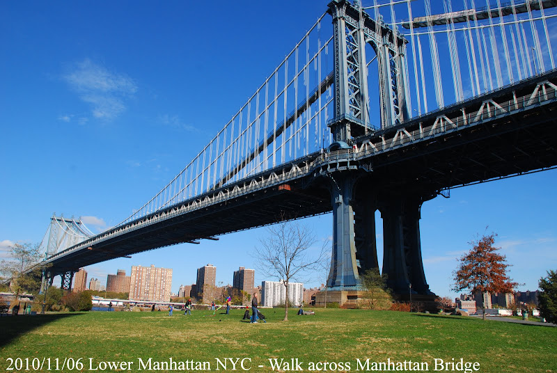 The Manhattan Bridge is a suspension bridge that crosses the East River in New York City, connecting Lower Manhattan (at Canal Street) with Brooklyn (at Flatbush Avenue Extension). It was the last of the three suspension bridges built across the lower East River, following the Brooklyn and the Williamsburg bridges. The bridge was opened to traffic on December 31, 109 and was designed by Leon Moisseiff,[1] who later designed the infamous original Tacoma Narrows Bridge that opened and collapsed in 1940. It has four vehicle lanes on the upper level (split between two roadways). The lower level has three lanes, four subway tracks, a walkway and a bikeway. The upper level, originally used for streetcars, has two lanes in each direction, and the lower level is one-way and has three lanes in peak direction. It once carried New York State Route 27 and later was planned to carry Interstate 478. No tolls are charged for motor vehicles to use the Manhattan Bridge.