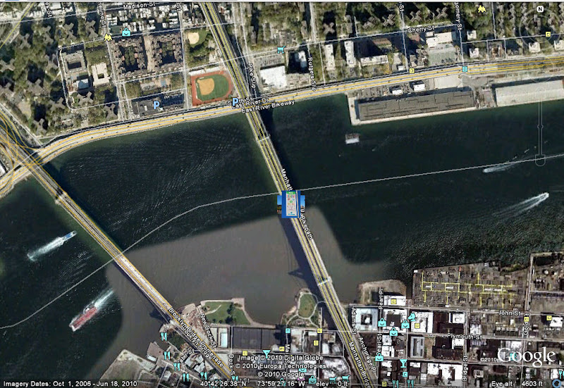 until late summer 2004, when a dedicated bicycle path was opened on the north side of the bridge, and again in 2007 while the bike lane was used for truck access during repairs to the lower motor roadway.