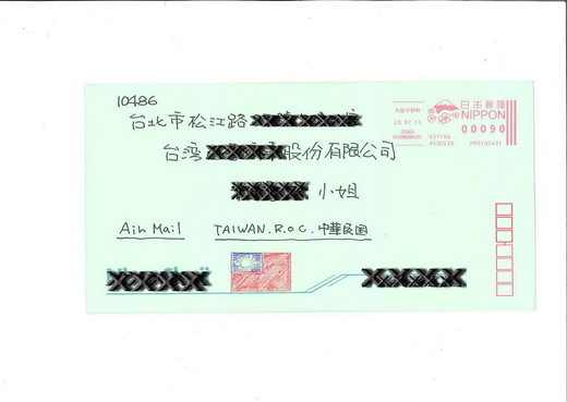 前陣子收到署名給日本前總經理的一封日本來信, 所以信件又輾轉回到了大阪,但前總經理又將它寄回台灣給我。 這下重點來了,內容都不重要,最厲害的在於那寄回的信封, 看到沒?~看到沒?~ 日本人把咱們國旗上...