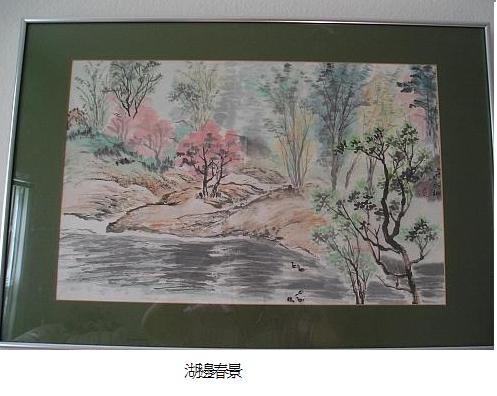 我出國以後﹐妹妹來信提到母親開始去學國畫。沒過幾年﹐老師居然就要她參加畫展。雖然讓她很緊張﹐但至少是肯定她的確有天份。那一陣子﹐我們有時會收到她的畫作﹐花卉的﹐山水的﹐鳥蟲的。她首次來看我們時﹐正逢初春﹐家居附近的湖邊﹐成排盛開的花樹和新抽的水綠嫩芽讓她看得著迷﹐要我拍下照片﹐她要畫出來﹔隔年我們真的收到她的作品﹐我們把畫鑲了框﹐掛在起居室最顯眼的牆上。