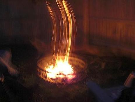 老大忙著烤肉﹐卻不時進來﹐要我出去和大家談話。我出去數次﹐入夜﹐氣溫有些降﹐兒子燒起一盆爐火﹐大家圍坐著﹐吃喝談笑。我和一兩個站在外圍的女孩簡單聊聊﹐就又進屋來﹐不想讓他們覺得拘束。