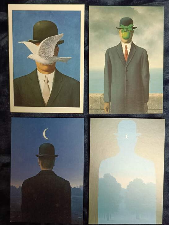 馬格利特也在1926年,完成了他的第一幅超現實主義作品。當然,他最知名的作品,不外乎1964年的《男人之子》(Son of Man),這幅畫其實是馬格利特的自畫像,西裝筆挺的他,背後是大海及矮牆,畫中的男子臉部卻被青蘋果擋住,而男子仍從蘋果的邊緣在窺視著觀眾。他的作品有股神秘感,眼前所見的事物,底下隱藏的,反而讓人更有興趣想知道。