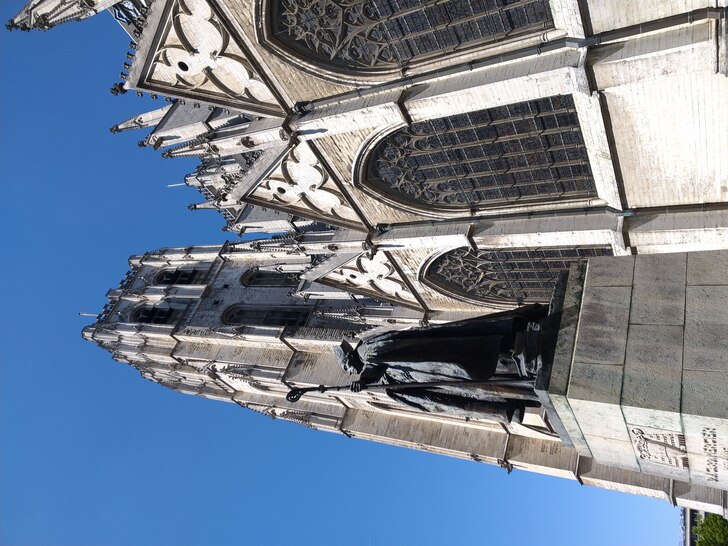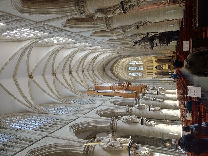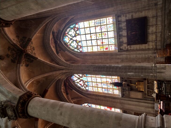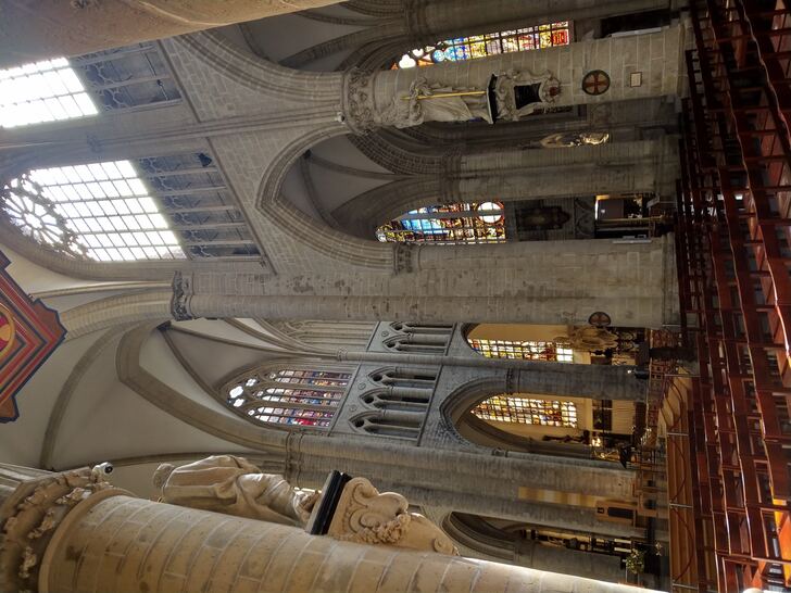 同樣有著哥德式風格外型,這座教堂最早始建於1047年,經過約3百年的興建,15世紀鐘樓落成,近70公尺高、正立面對稱十分壯觀,而教堂內部也是讓人讚嘆。