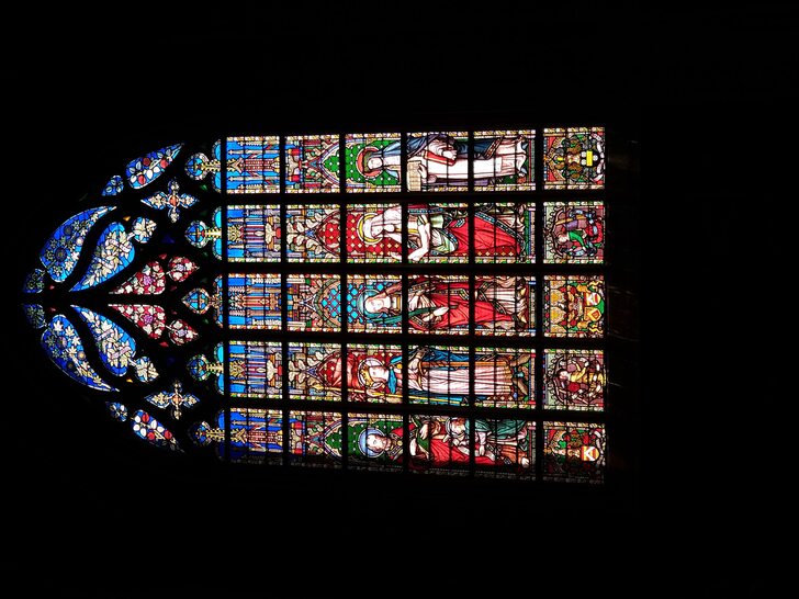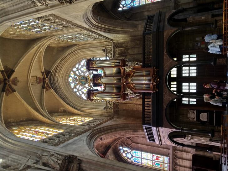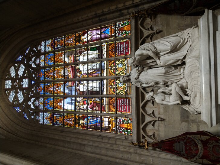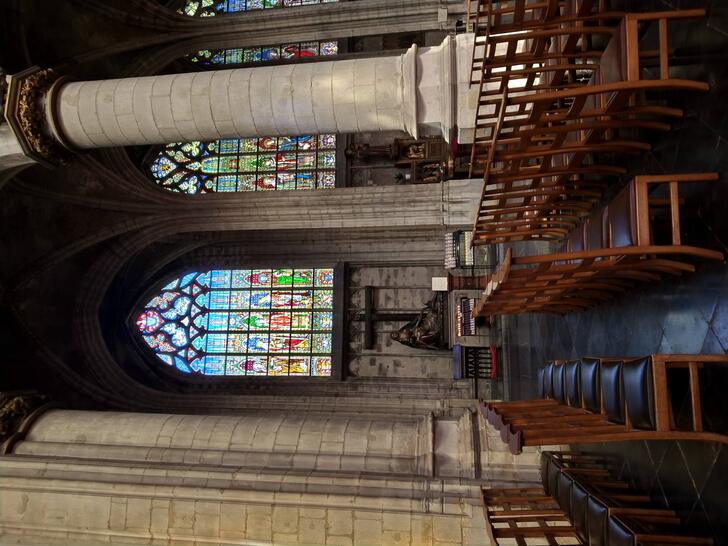 柱子上的十二使徒雕像,雕工精細,而彩繪玻璃也同樣精彩。參觀教堂是免費的,不過遊客不太多。若要到塔樓,或是參觀地穴、寶物庫等,則要額外付費。