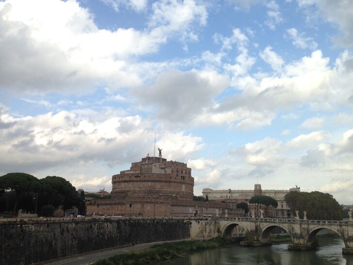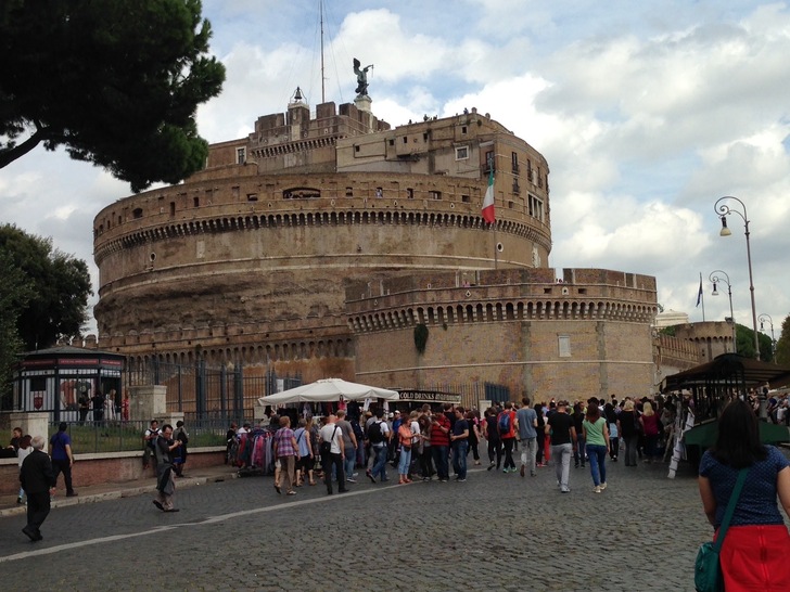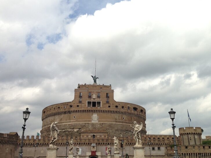 位於台伯河上重要的戰略位置,聖天使堡(Castel Sant’Angelo)建於西元139年,最剛開始,這裡是羅馬哈德良皇帝及其家人打造的陵墓。只不過後來因為軍事目的而被改建為城堡,也經歷了數次的洗劫,多數骨灰及棺木也都遭到毀壞了。